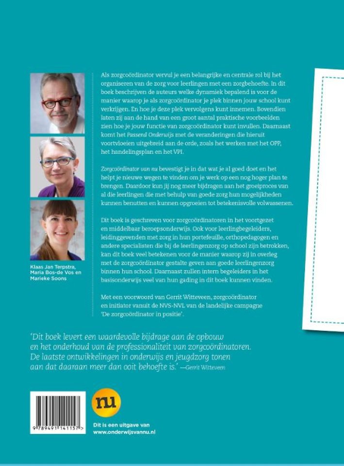 Dit boek is geschreven voor zorgcoördinatoren in het voortgezet en middelbaar beroepsonderwijs. Ook voor leerlingbegeleiders, leidinggevenden met zorg in hun portefeuille, orthopedagogen en andere specialisten die bij de leerlingenzorg op school zijn betrokken, kan dit boek veel betekenen voor de manier waarop zij in overleg met de zorgcoördinator gestalte geven aan goede leerlingenzorg binnen hun school. Daarnaast zullen intern begeleiders in het basisonderwijs veel van hun gading in dit boek kunnen vinden. Zorgcoördinator van Nu levert een waardevolle bijdrage aan de opbouw en het onderhoud van de professionaliteit van zorgcoördinatoren. De laatste ontwikkelingen in onderwijs en jeugdzorg tonen aan dat daaraan meer dan ooit behoefte is.