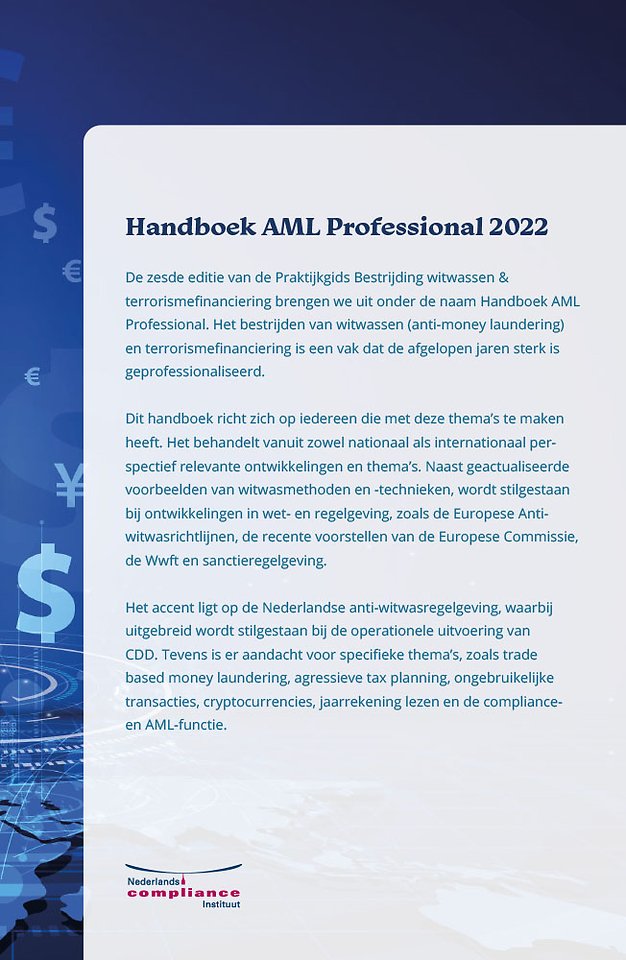 De zesde editie van de Praktijkgids Bestrijding Witwassen & Terrorismefinanciering brengen we uit onder de naam Handboek AML Professional. Het bestrijden van witwassen (anti-money laundering) en terrorismefinanciering is een vak dat de afgelopen jaren sterk is geprofessionaliseerd.