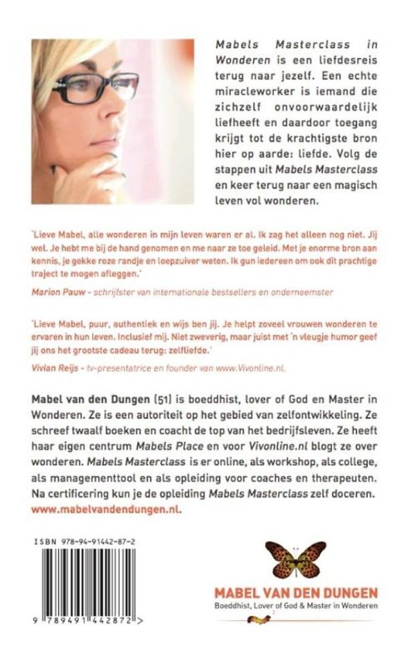 Jij hebt bij je geboorte alles meegekregen om gelukkig en 'in liefde' te zijn. Sommigen van ons zijn onderweg alleen vergeten hoe dat ook al weer moet. Met mijn boek Mabels Masterclass in Wonderen; een liefdesreis terug naar jezelf, help ik je herinneren aan wat jij onderweg vergeten bent. En dat is dat jij rechstreeks afkomstig bent uit de krachtigste bron hier op aarde: liefde! Het enige dat jij op dit moment nodig hebt om je dat weer tot het diepst van je ziel te beseffen, is de bereidheid om samen met mij deze liefdesreis te maken.