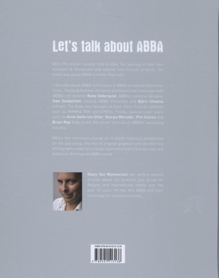 'Let's talk about ABBA'is the story of ABBA as told by their inner circle. The book features exclusive and brand new interviews with ABBA's art director Rune Sôderqvist, ABBA's costume designer Owe Sandström, several ABBA musicians and Björn Ulvaeus himself. The book also focuses on their other musical ventures such as MAMMA MIA! and CHESS.