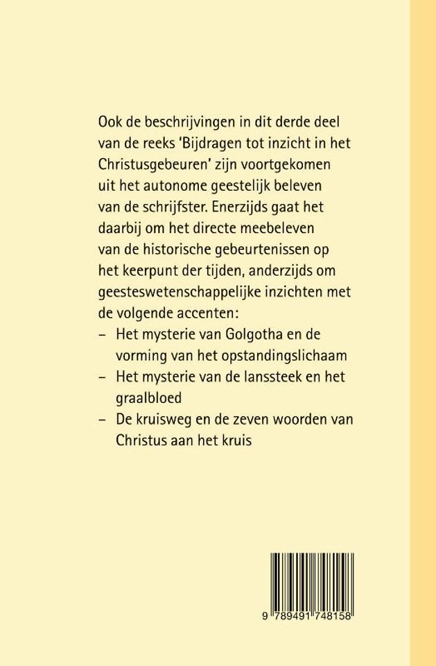 Ook de beschrijvingen in dit derde deel van de reeks 'Bijdragen tot inzicht in het Christusgebeuren' zijn voortgekomen uit het autonome geestelijk beleven van de schrijfster. Enerzijds gaat het daarbij om het directe meebeleven van de historische gebeurtenissen op het keerpunt der tijden, anderzijds om geesteswetenschappelijke inzichten met de volgende accenten: