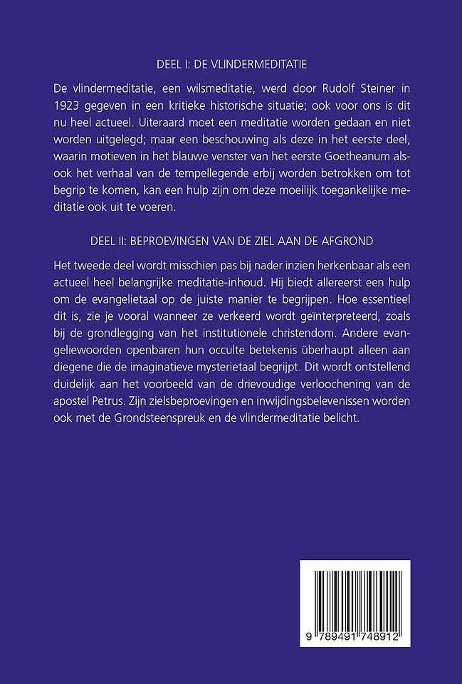De vlindermeditatie, een wilsmeditatie, werd door Rudolf Steiner in 1923 gegeven in een kritieke historische situatie; ook voor ons is dit nu heel actueel. Uiteraard moet een meditatie worden gedaan en niet worden uitgelegd; maar een beschouwing als deze in het eerste deel, waarin motieven in het blauwe venster van het eerste Goetheanum alsook het verhaal van de tempellegende erbij worden betrokken om tot begrip te komen, kan een hulp zijn om deze moeilijk toegankelijke meditatie ook uit te voeren.