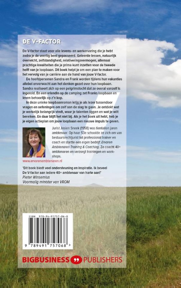 "Dit boek biedt veel ondersteuning en inspiratie. Ik beveel De V-factor aan iedere 40+ ambtenaar van harte aan!" - Pieter Winsemius, Voormalig minister van VROM
