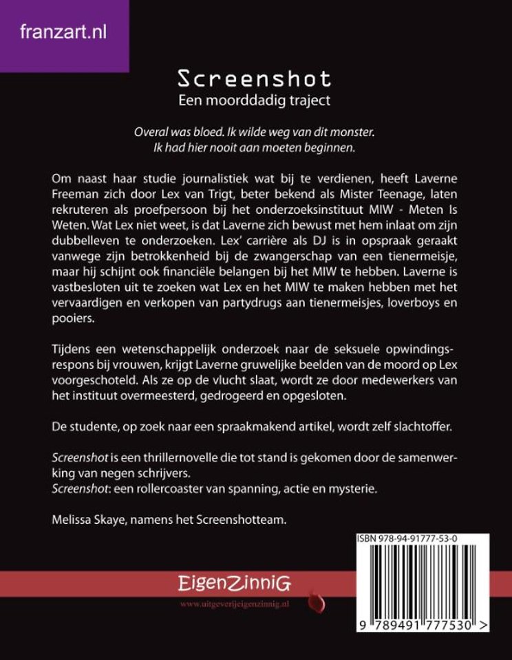 Screenshot is een thrillernovelle die tot stand is gekomen door de samenwerking van negen schrijvers.