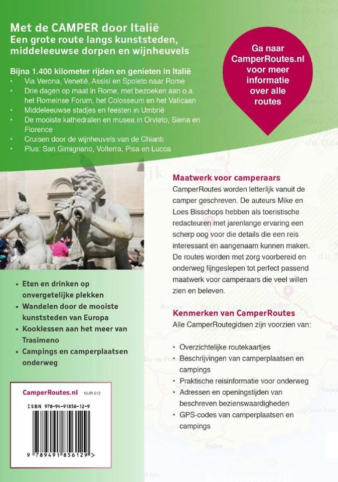 Deze uitgave in de reeks CamperRoutes bevat één lange doorlopende route naar Rome en een onvergetelijke route door Toscane & Umbrië.