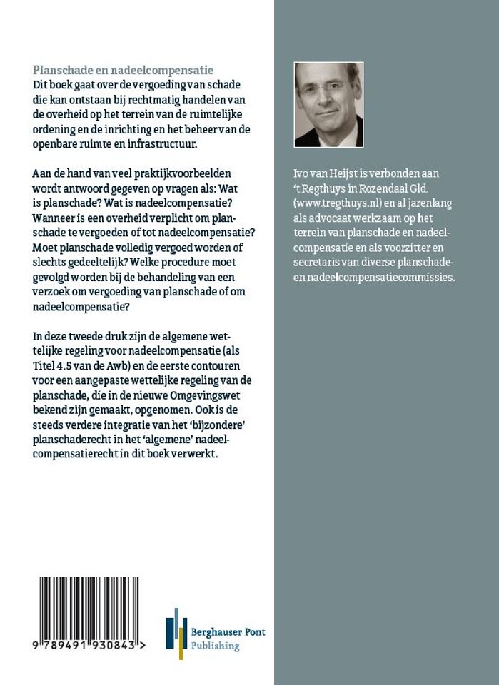 Planschade en nadeelcompensatie (tweede druk) gaat over de vergoeding van schade die kan ontstaan bij rechtmatig handelen van de overheid op het terrein van de ruimtelijke ordening en de inrichting en het beheer van de openbare ruimte en infrastructuur.
