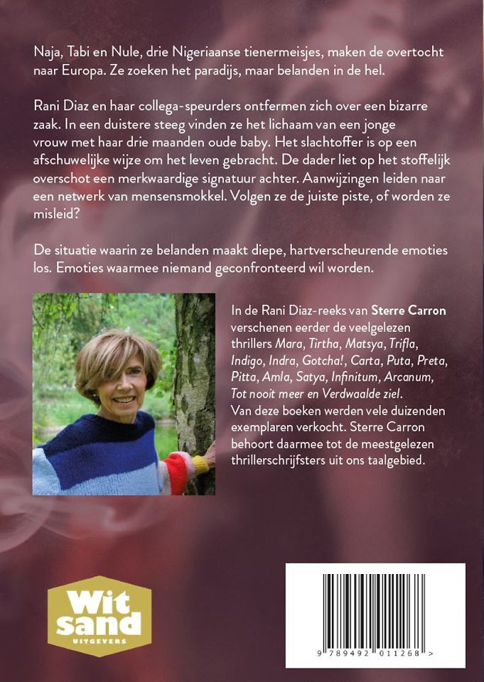 In de Rani Diaz-reeks van Sterre Carron verschenen eerder de veelgelezen thrillers Mara, Tirtha, Matsya, Trifla, Indigo, Indra, Gotcha!, Carta, Puta, Preta, Pitta, Amla, Satya, Infinitum, Arcanum, Tot nooit meer en Verdwaalde ziel.