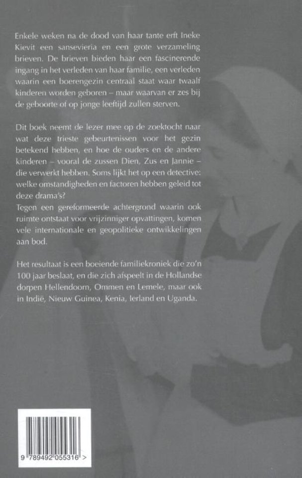 Enkele weken na de dood van haar tante erft Ineke Kievit een sansevieria en een grote verzameling brieven. De brieven bieden haar een fascinerende ingang in het verleden van haar familie, een verleden waarin een boerengezin centraal staat waar twaalf kinderen worden geboren - maar waarvan er zes bij de geboorte of op jonge leeftijd zullen sterven.