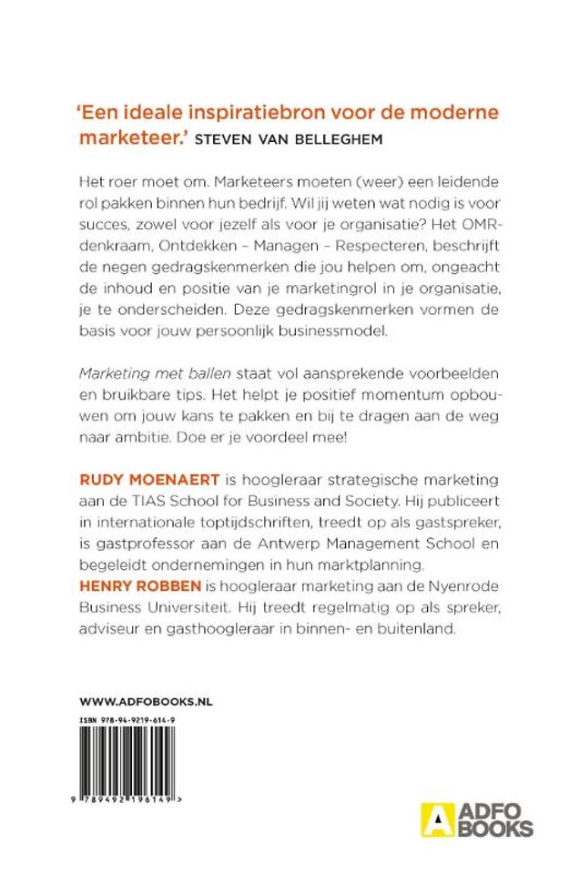 Rudy Moenaert: ‘Iedereen is marketeer’ Peter Spijker 12 mei 2016 Marketing verliest terrein in ondernemingen, vanwege een gebrek aan visie en leiderschap. Samen met Henry Robben schreef Rudy Moenaert het boek Marketing met ballen waarin drie gedragskenmerken centraal staan die marketingleiderschap bepalen: ontdekken, managen en respecteren. Lees het volledige artikel
