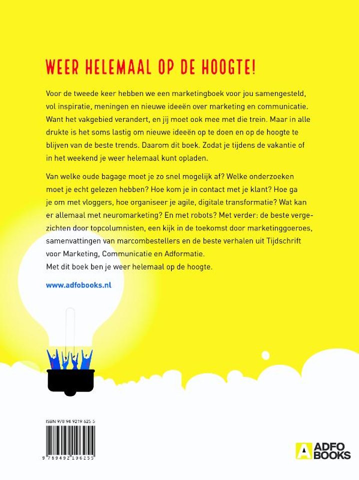 In dit inspirerende boek de beste vergezichten door topcolumnisten, een kijk in de toekomst door marketinggoeroes, samenvattingen van marcombestsellers en de beste verhalen uit Tijdschrift voor Marketing, Communicatie en Adformatie.
