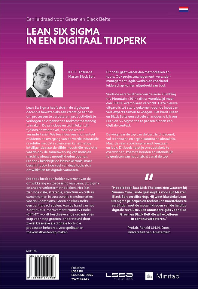 Met dit boek laat Dick Theisens zien waarom hij Summa Cum Laude geslaagd is voor zijn Master Black Belt certificering. Hij weet klassieke Lean Six Sigma principes en technieken moeiteloos te verbinden met de mogelijkheden van de huidige digitale revolutie. Een onmisbare gids voor elke Green en Black Belt die wil excelleren in continu verbeteren. - Prof.dr. Ronald J.M.M. Does, Universiteit van Amsterdam