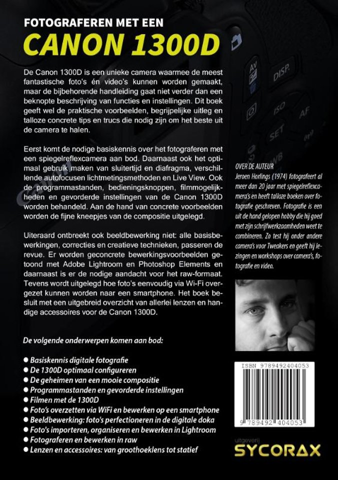 De Canon 1300D is een moderne camera waarmee fantastische foto's én video's kunnen worden gemaakt, maar de bijbehorende handleiding gaat niet verder dan een beknopte beschrijving van functies en instellingen. Dit boek geeft wel de praktische voorbeelden, begrijpelijke uitleg en talloze concrete tips en trucs die nodig zijn om het beste uit de camera te halen.