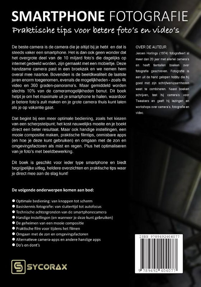 De beste camera is de camera die je altijd bij je hebt en dat is steeds vaker een smartphone. Het is dan ook geen wonder dat het overgrote deel van de 10 miljard foto's die dagelijks op internet gedeeld worden, zijn gemaakt met een mobieltje. Deze handzame camera past in een broekzak en we nemen hem overal mee naartoe. Bovendien is de beeldkwaliteit de laatste jaren enorm toegenomen, evenals de mogelijkheden - zoals 4k video en 360 graden-panorama's. Maar gemiddeld worden slechts 10% van de cameramogelijkheden benut. Dit boek helpt je om het maximale uit je smartphone te halen, waardoor je betere foto's zult maken en je grote camera thuis kunt laten als je op vakantie gaat.