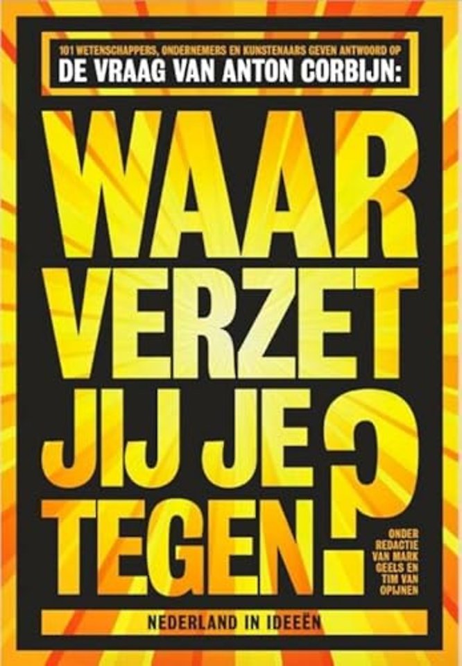 Meer over de auteurs'Waar verzet jij je tegen?' is de vierde editie in de succesvolle reeks 'Nederland in ideeën', waarin toonaangevende wetenschappers, ondernemers en kunstenaars antwoord geven op één vraag op het raakvlak van wetenschap en maatschappij. Dit jaar werd de vraag gesteld door Anton Corbijn: ‘Waar verzet jij je tegen?’