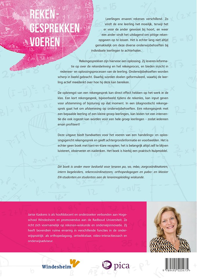 Deze uitgave biedt handvatten voor het voeren van een handelings- en oplossingsgericht rekengesprek en geeft achtergrondinformatie en voorbeelden. Het is echter geen boek met kant-en-klare recepten; het is belangrijk altijd zelf te blijven luisteren, observeren en nadenken. Het boek is hierbij een praktisch hulpmiddel.