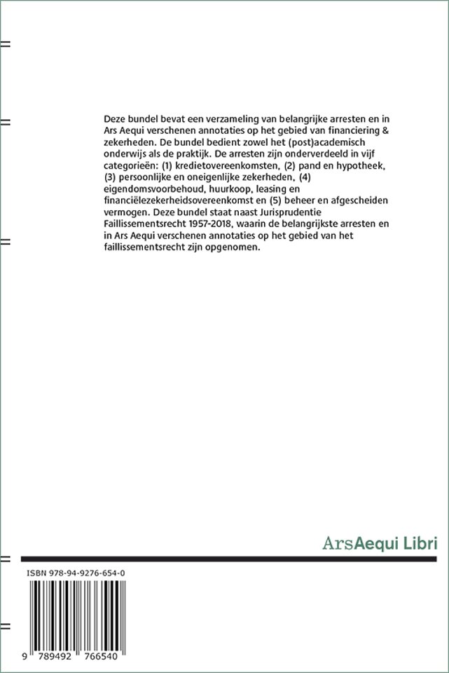 Deze bundel bevat een verzameling van belangrijke arresten en in Ars Aequi verschenen annotaties van 1957 tot en met 2018 op het gebied van financiering & zekerheden. De bundel bedient zowel het (post)academisch onderwijs als de praktijk.