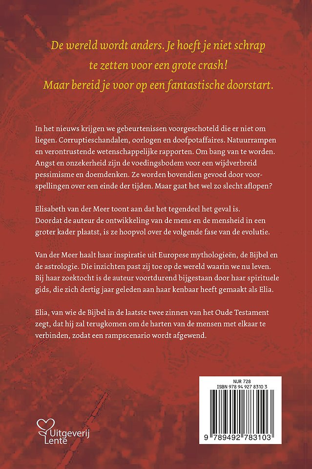 Van der Meer haalt haar inspiratie uit Europese mythologieën, de Bijbel en de astrologie. Die inzichten past zij toe op de wereld waarin we nu leven.Bij haar zoektocht is de auteur voortdurend bijgestaan door haar spirituele gids, die zich dertig jaar geleden aan haar kenbaar heeft gemaakt als Elia.