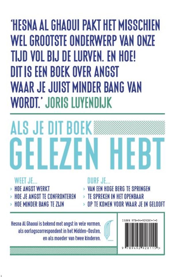 "Hesna Al Ghaoui pakt het misschien wel grootste onderwerp van onze tijd vol bij de lurven. En hoe! Dit is een boek over angst waar je juist minder bang van wordt." - Joris Luyendijk