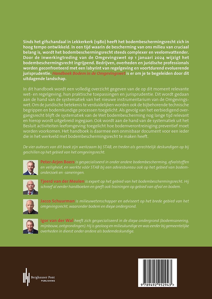 Door de inwerkingtreding van de Omgevingswet op 1 januari 2024 wijzigt het bodembeschermingsrecht ingrijpend. Bedrijven, overheden en juridische professionals worden geconfronteerd met een labyrint van regelgeving en voortdurend evoluerende jurisprudentie. Handboek Bodem in de Omgevingswet is er om je te begeleiden door dit uitdagende landschap.