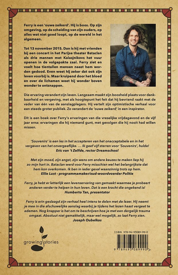 Ferry is erin geslaagd zijn verhaal heel intens te delen met de lezer. Hij neemt je mee in die afschuwelijke aanslag waarbij je tijdens het lezen haast vergeet te ademen. Nog knapper is het om te beschrijven hoe je met een dergelijk trauma omgaat. Absoluut niet gemakkelijk, maar wel mogelijk, zo laat Ferry zien.