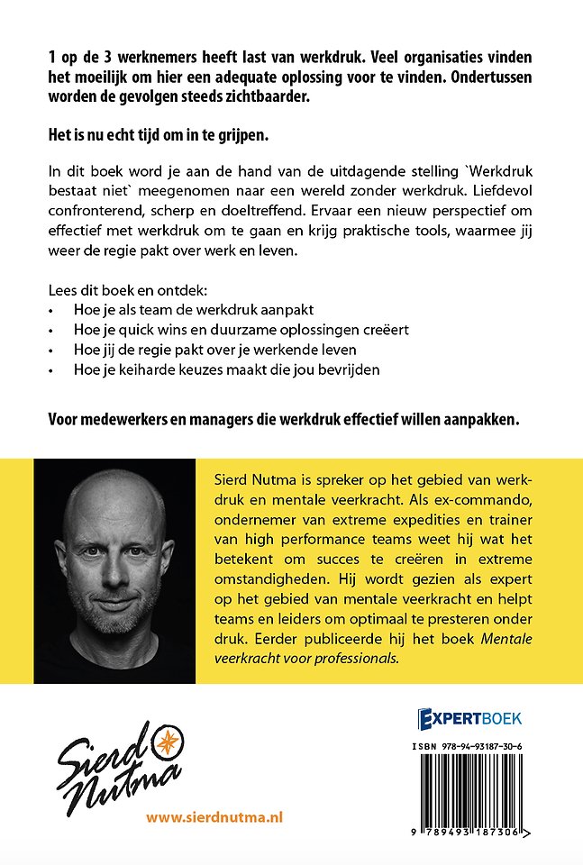 Sierd Nutma is spreker op het gebied van werkdruk en mentale veerkracht. Als ex-commando, ondernemer van extreme expedities en trainer van high performance teams weet hij wat het betekent om succes te creëren in extreme omstandigheden.