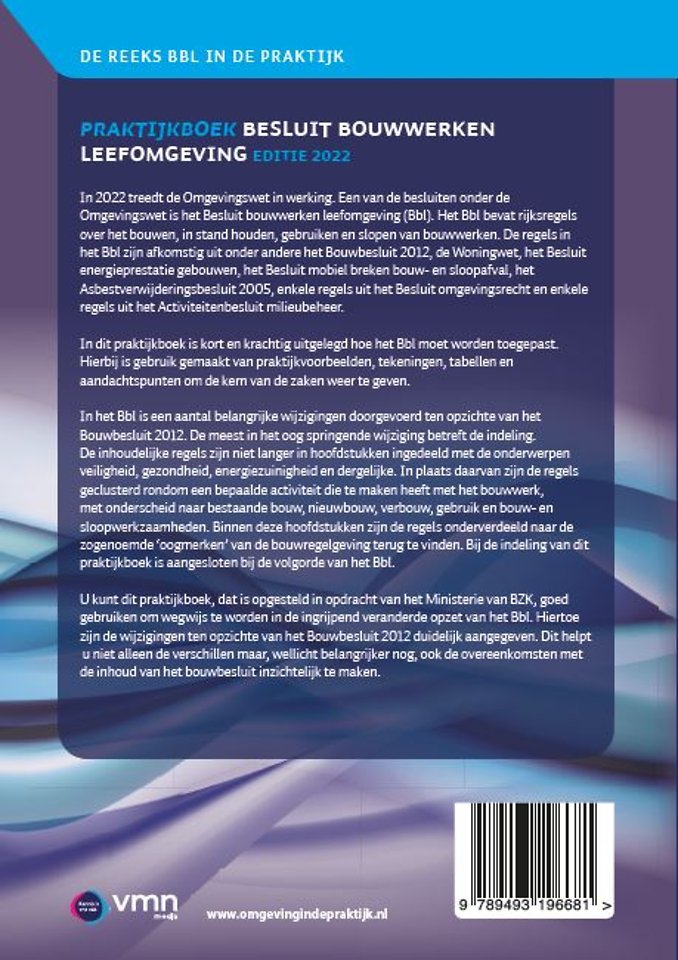 In dit praktijkboek is kort en krachtig uitgelegd hoe het Bbl moet worden toegepast. Hierbij is gebruik gemaakt van praktijkvoorbeelden, tekeningen, tabellen en aandachtspunten om de kern van de zaken weer te geven.