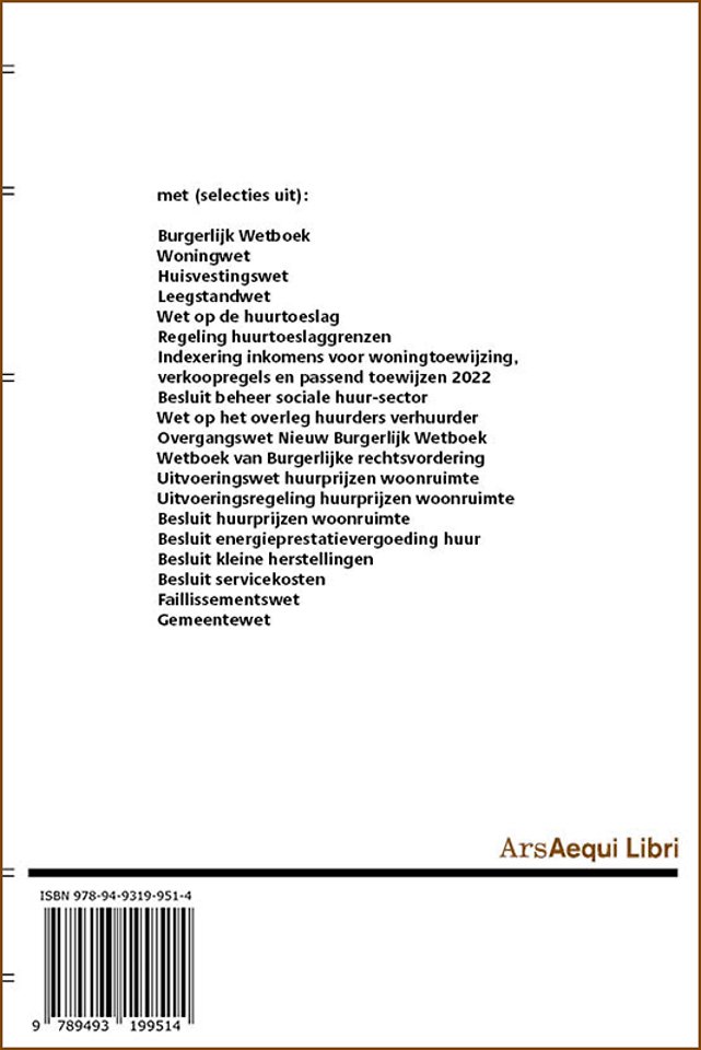 Deze wetseditie bevat de meest relevante wet- en regelgeving op het gebied van huur en verhuur. Teksten zoals deze gelden op 1 februari 2022.