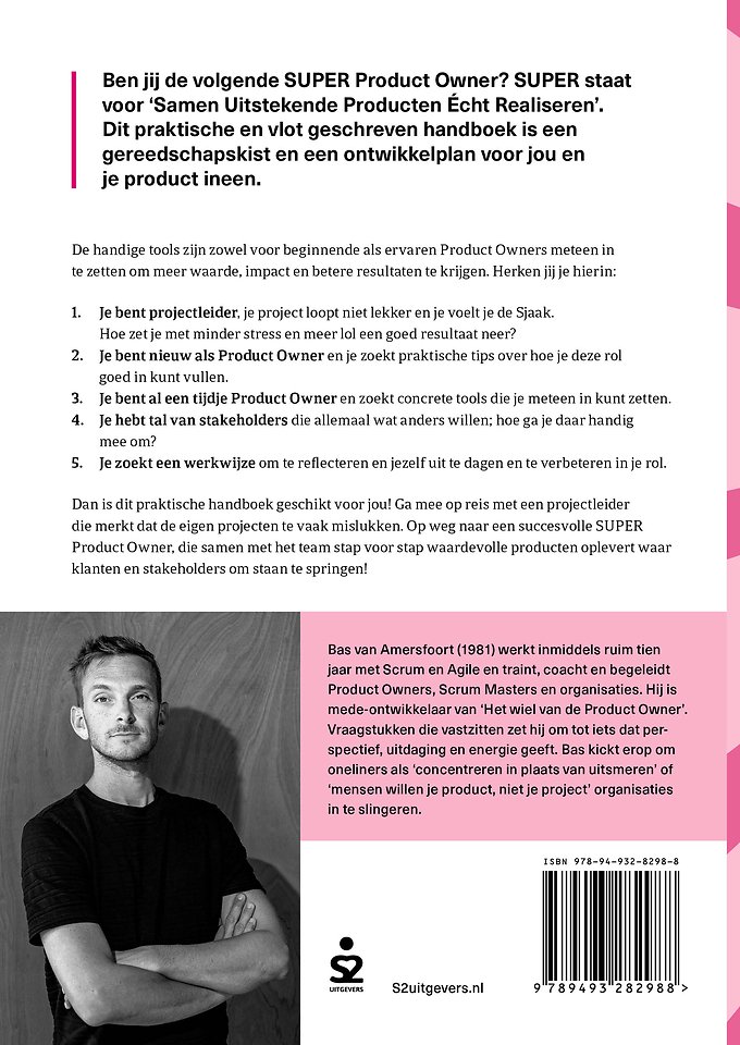 Bas van Amersfoort (1981) werkt inmiddels ruim 10 jaar met Scrum en Agile en traint, coacht en begeleidt Product Owners, Scrum Masters en organisaties. Hij is mede-ontwikkelaar van ‘Het wiel van de Product Owner’.