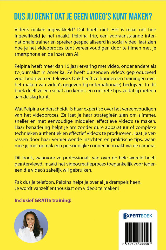 Pelpina Trip is een veelzijdige expert op het gebied van videomarketing met een unieke missie: het simplificeren van videocommunicatie. Met een achtergrond als tv-presentatrice en producer en ervaring in online marketing, combineert ze journalistieke flair met praktische videomarketingkennis. Haar benadering is eenvoudig: met een smartphone en een plan kan iedereen krachtige video's maken.