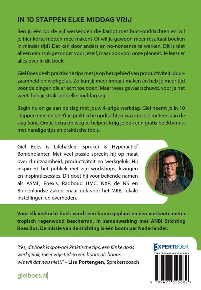 Giel Boes deelt praktische tips met je op het gebied van productiviteit, duurzaamheid en werkgeluk. Zo kun jij meer impact maken én heb je meer tijd voor de dingen die er echt toe doen! Maar wees gewaarschuwd, voor je het weet, heb jij straks ook elke middag vrij...