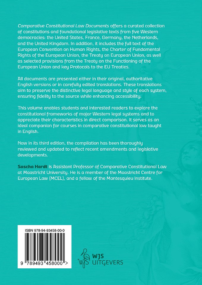 Comparative Constitutional Law Documents offers a curated collection of constitutions and foundational legislative texts from five Western democracies: the United States, France, Germany, the Netherlands, and the United Kingdom. In addition, it includes the full text of the European Convention on Human Rights, the Charter of Fundamental Rights of the European Union, the Treaty on European Union, as well as selected provisions from the Treaty on the Functioning of the European Union and key Protocols to the EU Treaties.