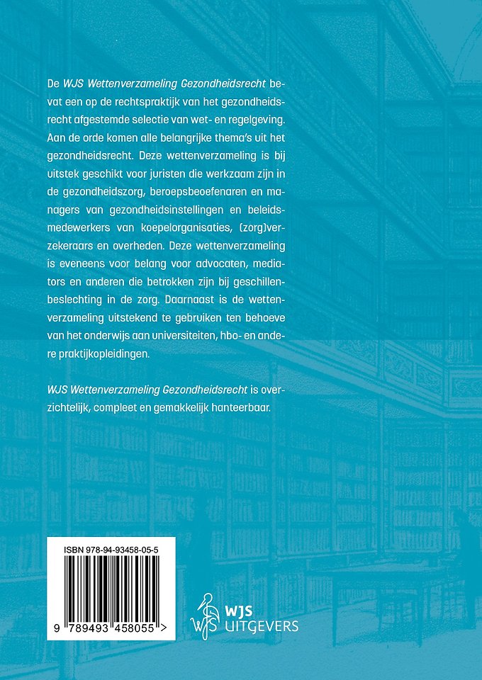 Deze wettenverzameling is eveneens voor belang voor advocaten, mediators en anderen die betrokken zijn bij geschillenbeslechting in de zorg. Daarnaast is de wettenverzameling uitstekend te gebruiken ten behoeve van het onderwijs aan universiteiten, hbo- en andere praktijkopleidingen. WJS Wettenverzameling Gezondheidsrecht is overzichtelijk, compleet en gemakkelijk hanteerbaar.