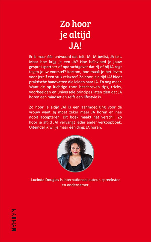 Zo hoor je altijd JA! is een aanmoediging voor de vrouw want zij moet zeker meer JA horen en nee nooit accepteren. Dit boek maakt het verschil. Zo hoor je altijd JA! vervangt ieder ander verkoopboek. Uiteindelijk wil je maar één ding: JA horen.