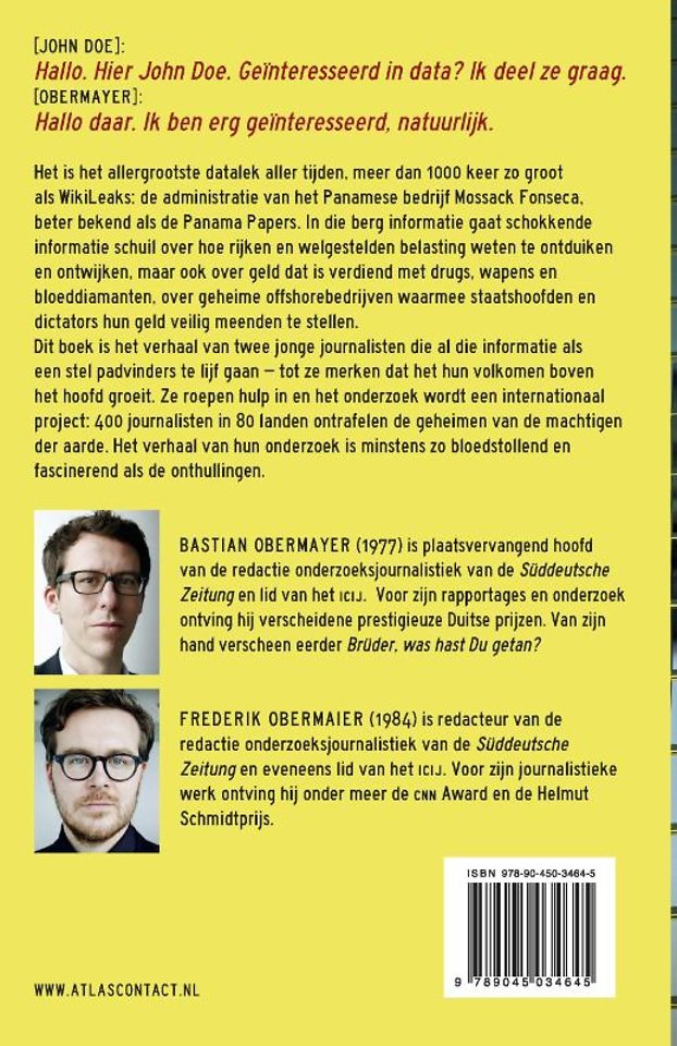 Dit boek is het verhaal van twee jonge journalisten die al die informatie als een stel padvinders te lijf gaan – tot ze merken dat het hun volkomen boven het hoofd groeit. Ze roepen hulp in en het onderzoek wordt een internationaal project: 400 journalisten in 80 landen ontrafelen de geheimen van de machtigen der aarde. Het verhaal van hun onderzoek is minstens zo bloedstollend en fascinerend als de onthullingen.