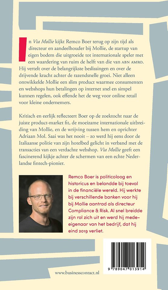 In 'Via Mollie' kijkt Remco Boer terug op zijn tijd als directeur en aandeelhouder bij Mollie, de startup van eigen bodem die uitgroeide tot internationale speler meteen waardering van ruim de helft van die van ABN Amro.
