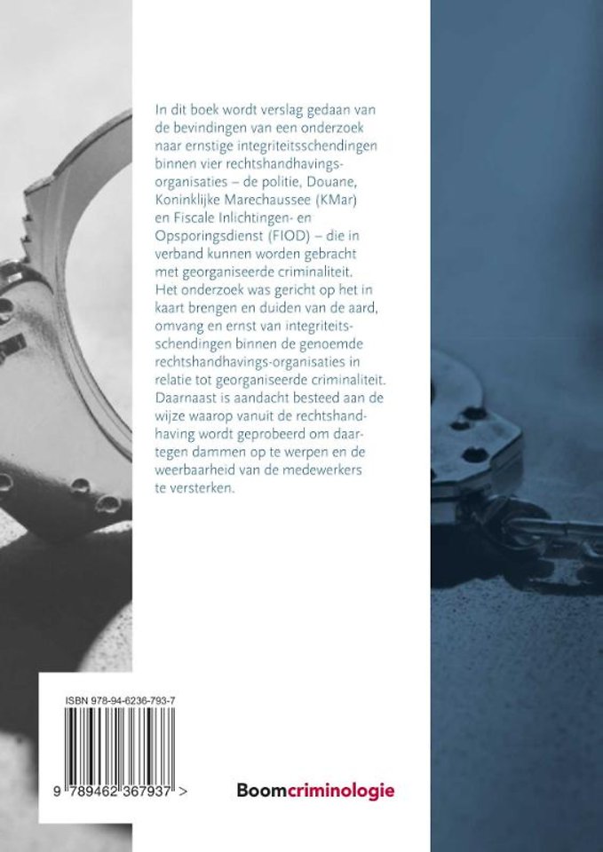 In dit boek wordt verslag gedaan van de bevindingen van een onderzoek naar ernstige integriteitsschendingen binnen vier rechtshandhavingsorganisaties – de politie, Douane, Koninklijke Marechaussee (KMar) en Fiscale Inlichtingen- en Op sporingsdienst (FIOD) – die in verband kunnen worden gebracht met georganiseerde criminaliteit.