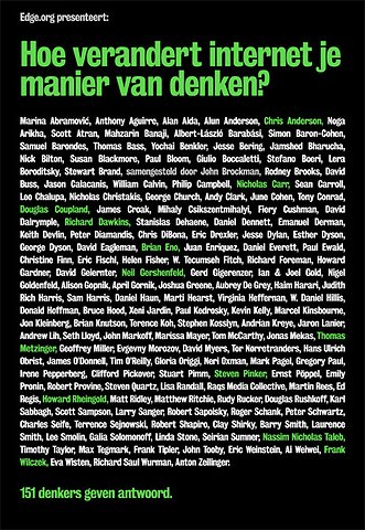 Dit jaar geven Richard Dawkins (The God Delusion), Steven Pinker (The Blank Slate), Nassim Nicholas Taleb (De zwarte zwaan), Brian Eno (muzikant en producer U2), Frank Wilczek (Nobelprijs voor natuurkunde 2004), Thomas Metzinger (The Ego Tunnel) en 164 andere invloedrijke denkers antwoord op de vraag: 'Hoe verandert internet je manier van denken?'
