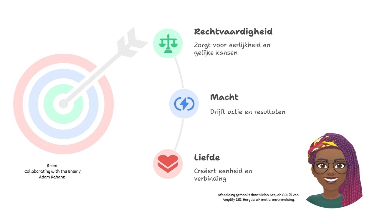 Een van de krachtigste inzichten voor leiders is Kahane’s analyse van drie drijfveren: liefde, macht en rechtvaardigheid.