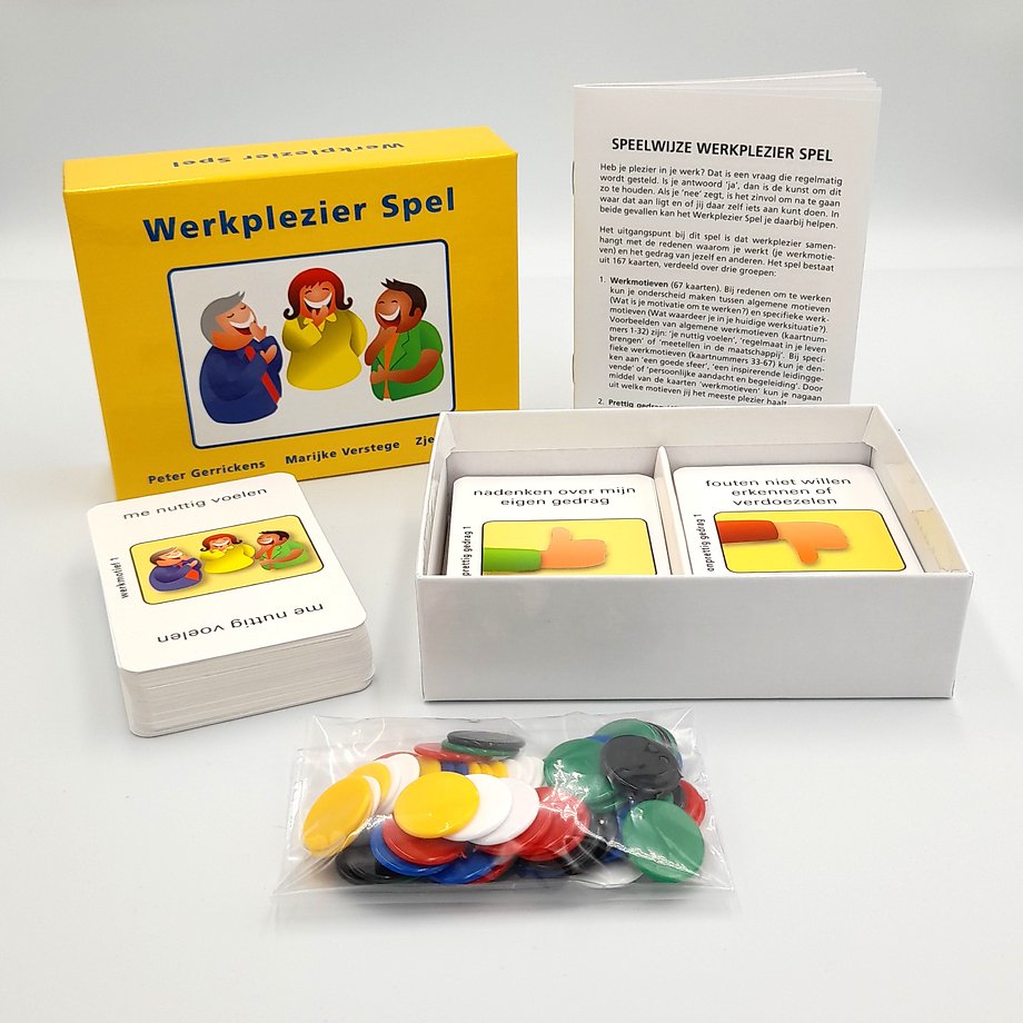 'Werkplezier spel' is bedoeld om zicht te krijgen op wat bijdraagt en afbreuk doet aan het plezier in uw werk, waarna u kunt bepalen of u daar als individu of als collega's iets aan kan of wil doen. Peter Gerrickens, Marijke Verstege en Zjev van Dun hebben in totaal zes spelvormen beschreven. Het spel is geschikt voor individuele coaching, loopbaanplanning, teambuilding, trainings- en opleidingsgroepen en intervisie.